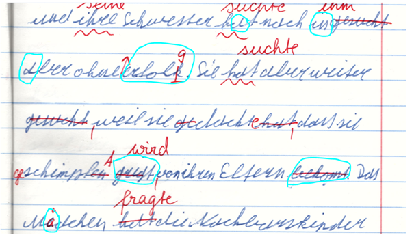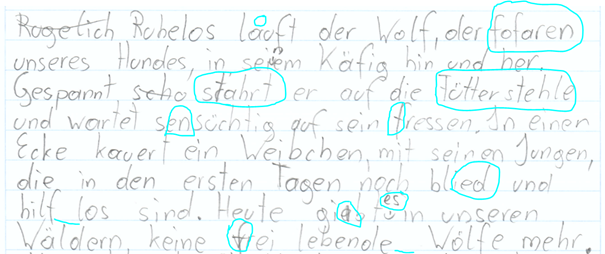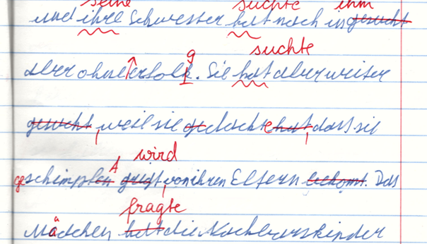 - Zahlreiche Rechtschreibfehler, auch beim Abschreiben oder geübten Texten